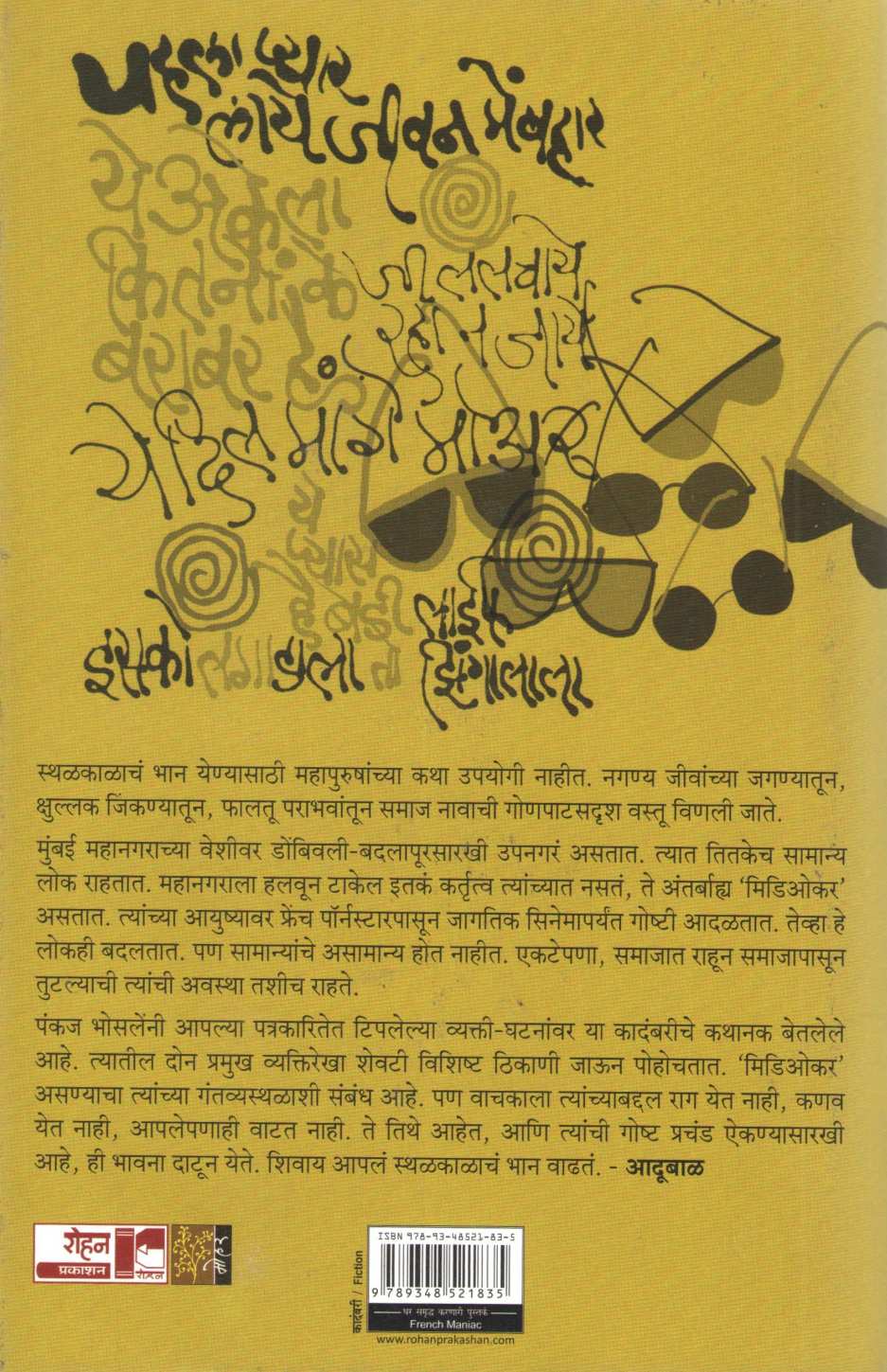 पंकज भोसलेंनी आपल्या पत्रकारितेत टिपलेल्या व्यक्ती-घटनांवर या कादंबरीचे कथानक बेतलेले आहे. त्यातील दोन प्रमुख व्यक्तिरेखा शेवटी विशिष्ठ ठिकाणी जाऊन पोहोचतात. 'मिडिओकर' असण्यास त्यांच्या गंतव्यस्थळाशी संबंध आहे. पण वाचकाला त्यांच्याबद्दल राग येत नाही, कणव येत नाही, आपलेपणाही वाटत नाही. ते तिथे आहेत, आणि त्यांची गोष्ट प्रचंड ऐकण्यासारखी आहे, ही भावना दाटून येते. शिवाय आपलं स्थळकाळाचं भान वाढतं. - आदूबाळ