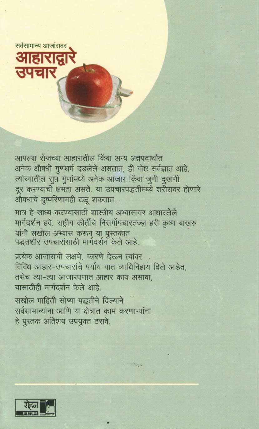 आपल्या रोजच्या आहारातील किंवा अन्य अन्नपदार्थांत अनेक औषधी गुणधर्म दडलेले असतात. त्यांच्यातील सुप्त गुणांमध्ये अनेक आजार किंवा जुनी दुखणी दूर करण्याची क्षमता असते. अशाच उपचारपध्दतींचं शास्त्रीय अभ्यासावर आधारित मार्गदर्शन हरी कृष्ण बाखरू यांनी या पुस्तकाद्वारे केलं आहे.